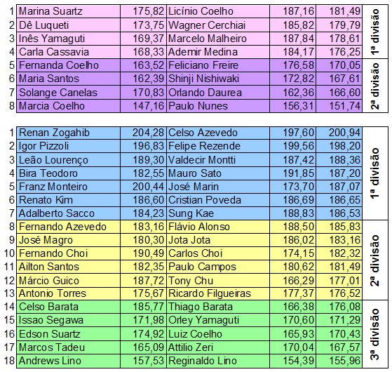 Ranking Paulista 2009 e no caso de atleta conhecido, mas sem média